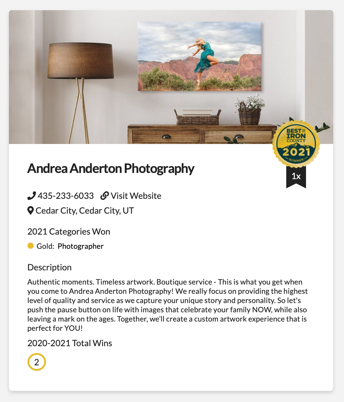 Voted "BEST PHOTOGRAPHER" three years in a row
